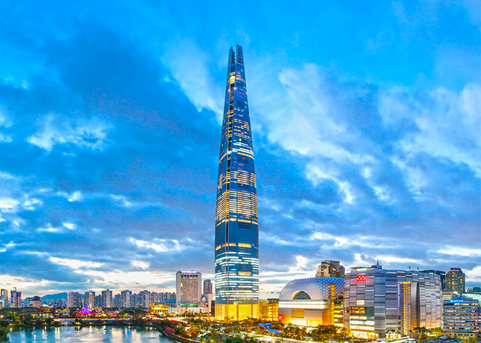 Visit Hangang River cutting through central Seoul, the highest building, Lotte World Tower, and the modernized district of Gangnam.