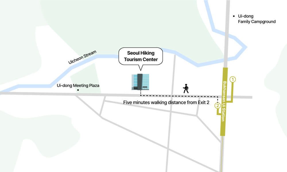 So, here we are to share a piece of good news with those that might be curious. In June, the Seoul Hiking Tourism Center will open. The Seoul Hiking Tourism Center is five minutes walking distance from Exit 2 of Bukhansan Ui Station. It will provide hikers and tourists with information on Seoul hiking tourism, Seoul tourism, and various other amenities. The Seoul Hiking Tourism Center provides multilingual information services in English, Chinese, and Japanese, making it more accessible for tourists that may not speak Korean.