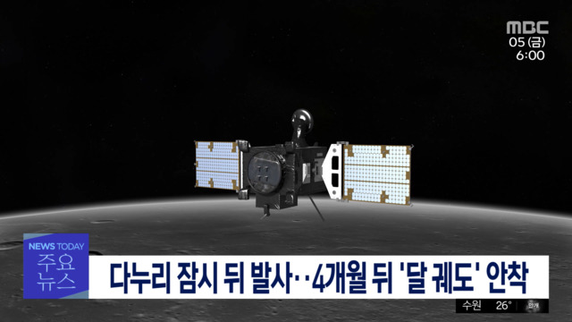 The Korea Aerospace Research Institute will check whether Danuri succeeded in entering the trajectory a month before its target at around 2 p.m. today by analyzing projectile separation information.